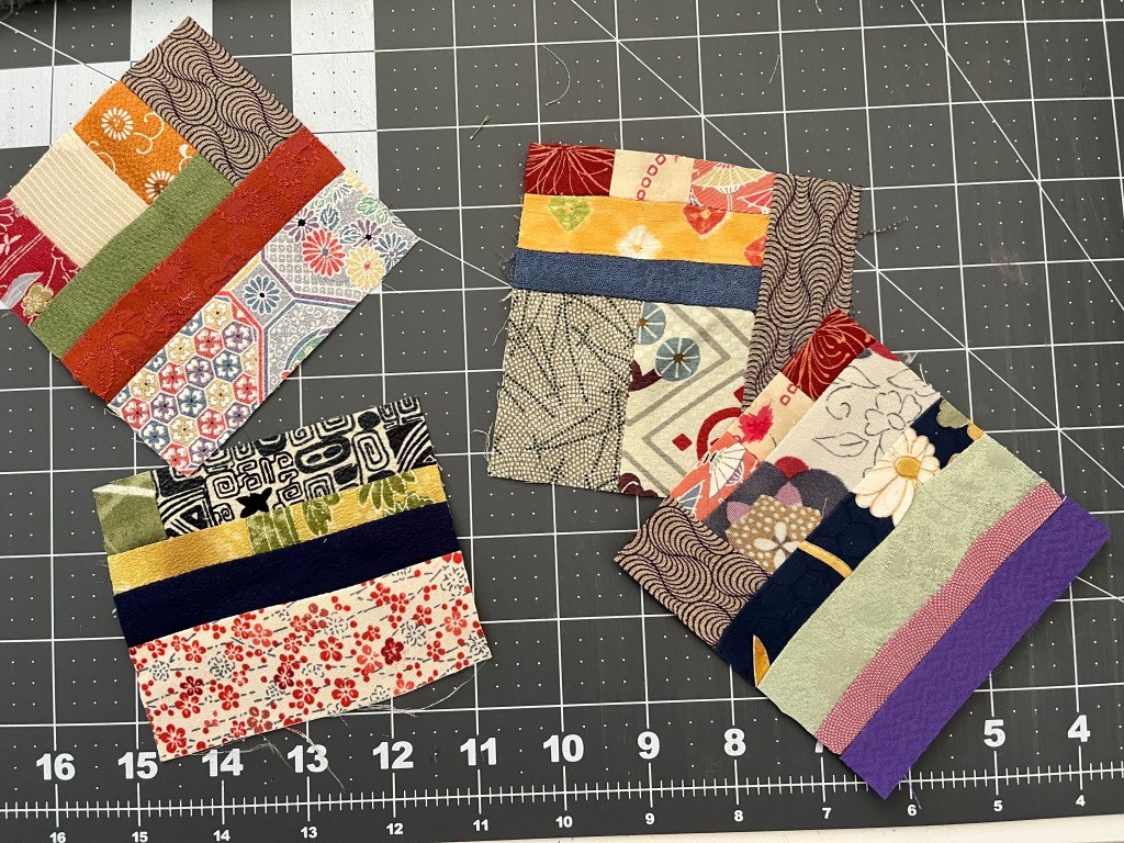 Frustrated that my project had to go on hold, I started reimagining a previous project of strips of kimono fabric I had sewn together.