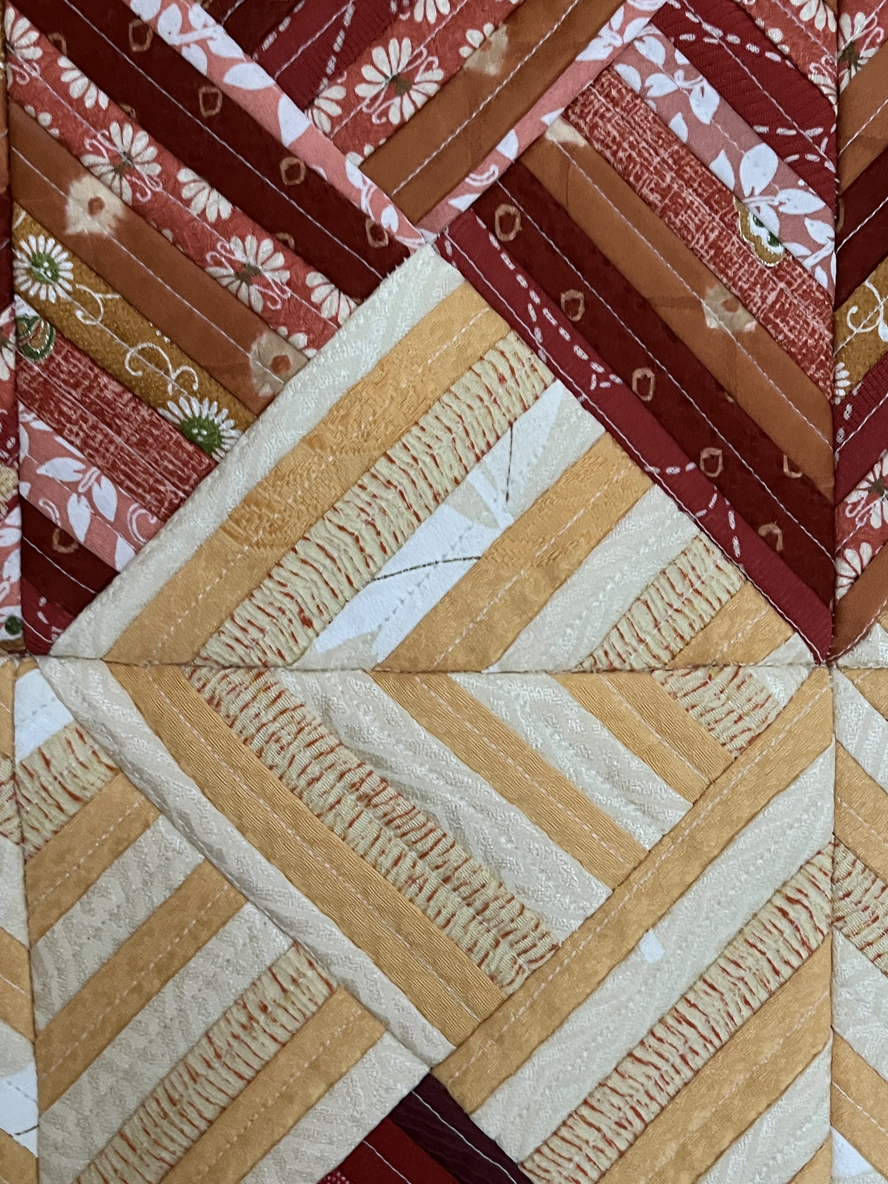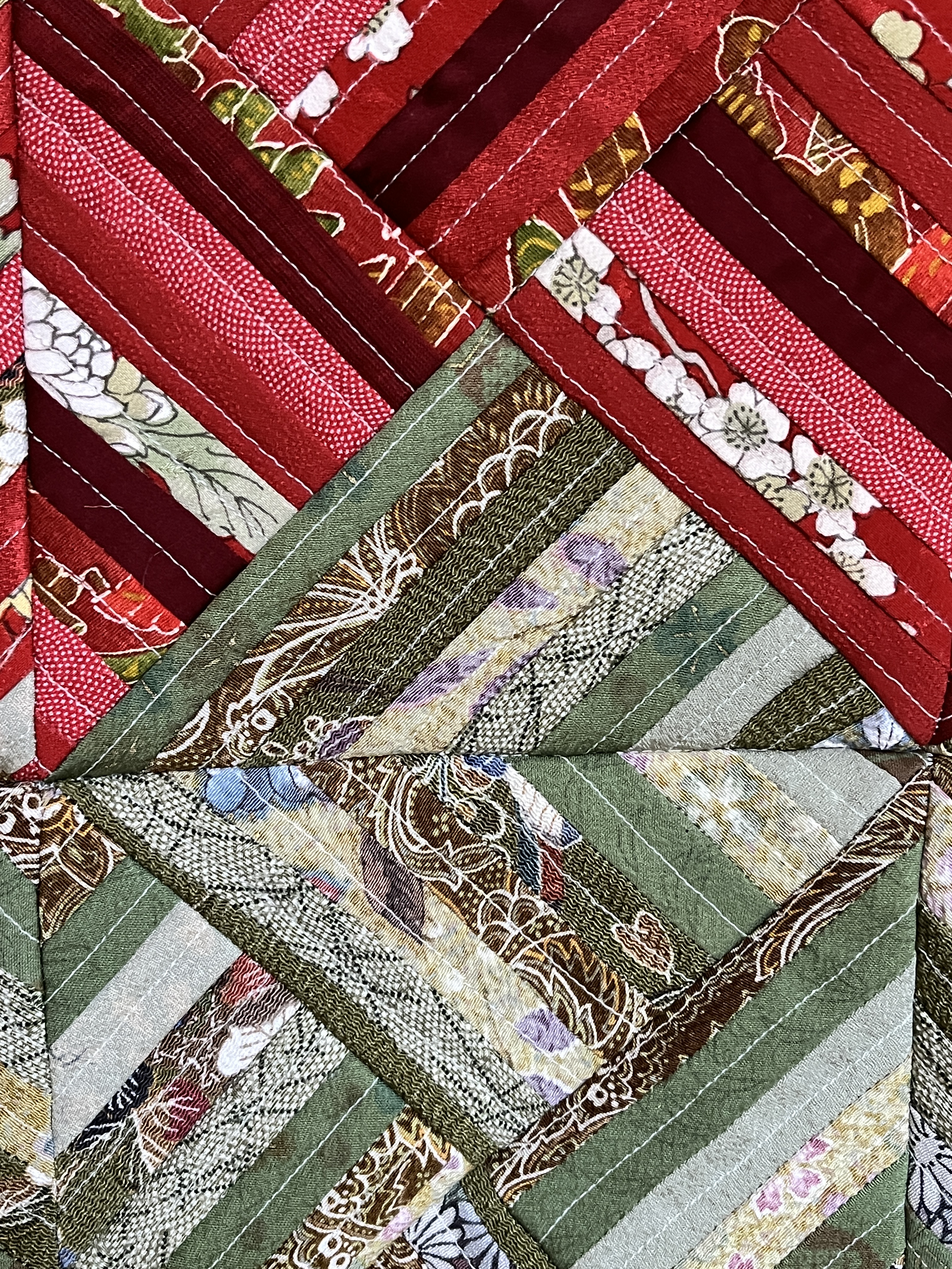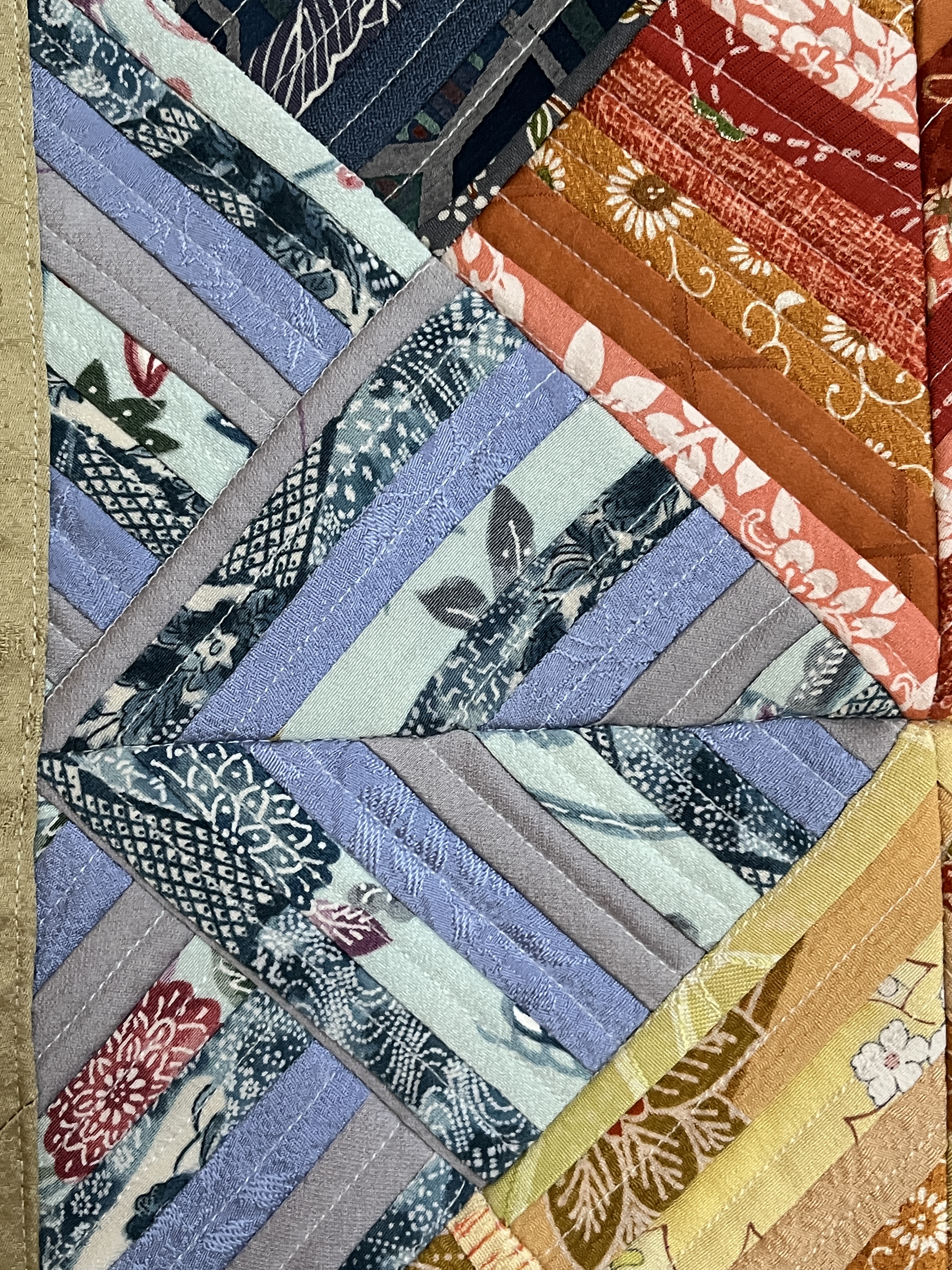 The title of wall hanging is ‘Poppy field in a sunset’. My next wall hanging project will be made from a black tomesode kimono with gold cranes. But I have to finish my other UFOs first!